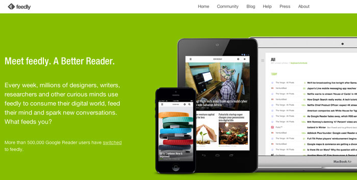 Reconozco que he sido fiel a GoogleReader durante muchos años (por comodidad y pereza de no salirme de mi Gmail) pero ya hace tiempo tantee a Feedly, y tras el anuncio (temido y odiado por muchos) de la desaparición del lector RSS de Google, mi transito ha sido casi indoloro.